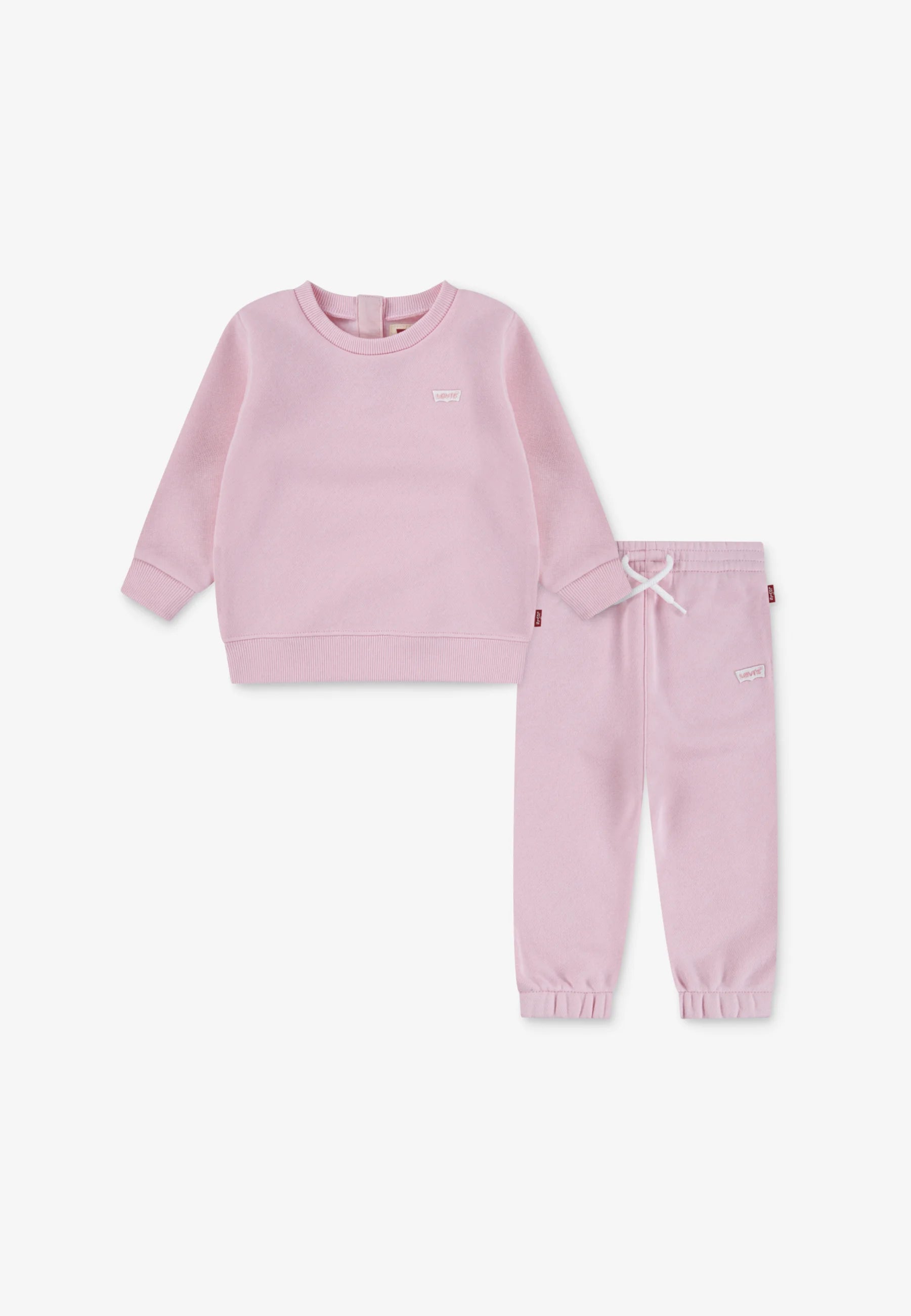 This Levi’s baby girl tracksuit set is both cute and comfortable, crafted in soft pink fabric with embroidered Levi’s logos. The set includes a long-sleeve sweatshirt with snap-button fastening at the back and matching jogger pants with an elasticated waist. Perfect for everyday wear and playtime, it’s an essential set for stylish comfort.